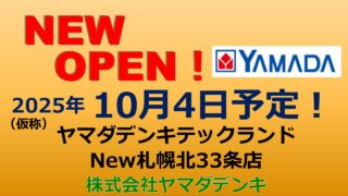 家電量販 新規オープン【2025年10月4日】(仮称)ヤマダデンキテックランドNew札幌北33条店
