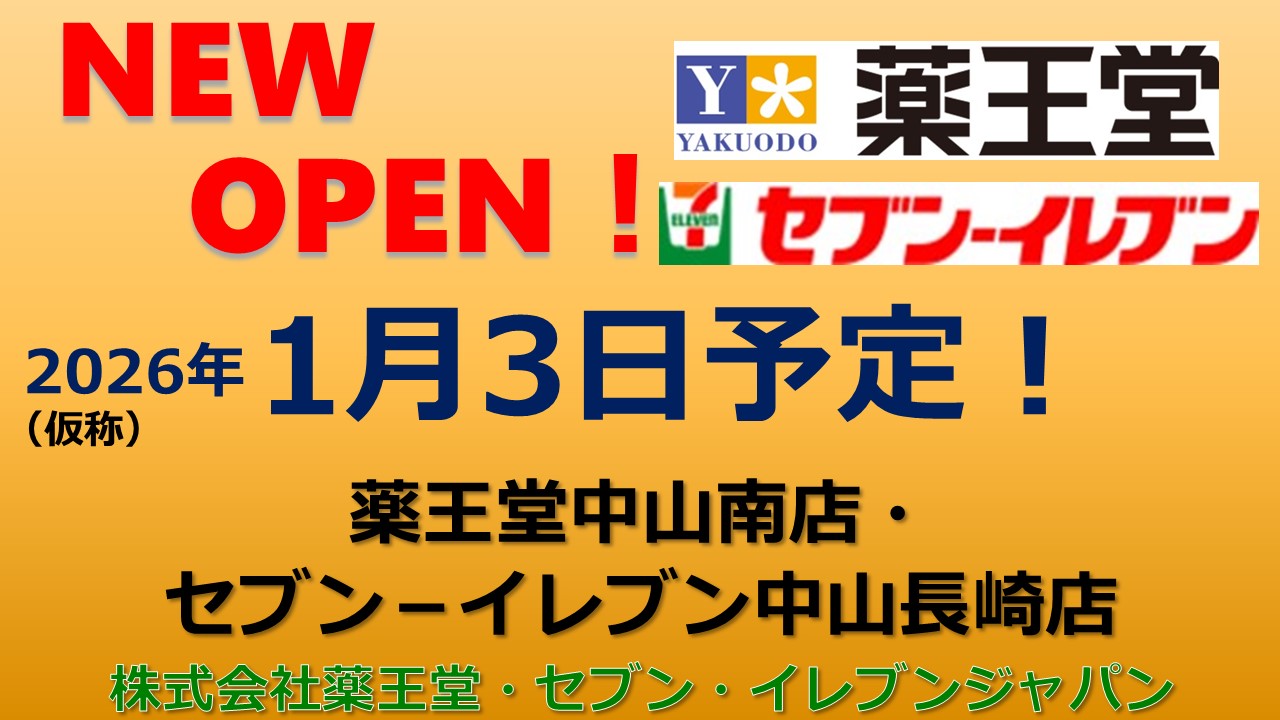 OPEN!【2026年1月16日】薬王堂中山南店・セブン-イレブン中山長崎店