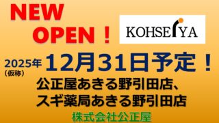 スーパーマーケット 新規オープン【2025年12月31日】公正屋あきる野引田店、スギ薬局あきる野引田店 この記事は、東京都秋多都市計画事業武蔵引田駅北口土地区画整理事業第26街区に2025年12月31日OPEN予定の公正屋あきる野引田店、スギ薬局あきる野引田店について書かれています。 2025.09.08 スーパーマーケットドラッグストア