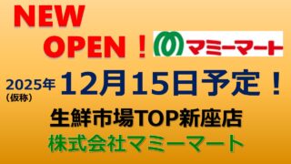 スーパーマーケット 新規オープン【2025年12月15日】(仮称)生鮮市場TOP新座店 OPEN!【2025年12月15日】(仮称)生鮮市場TOP新座店新店予定日:2025年12月15日住所:埼玉県新座市野火止六丁目116番1企業名:株式会社マミーマート店舗名:(仮称)生鮮市場TOP新座店営業時間:開店時間:午前7時00分、閉... 2025.09.08 スーパーマーケット
