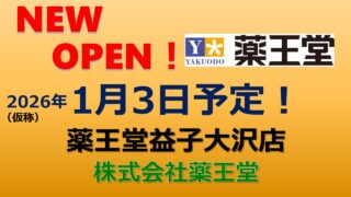 ドラッグストア 新規オープン【2026年1月3日】薬王堂益子大沢店 この記事は、栃木県芳賀郡益子町大字大沢126-1 外に2026年1月3日OPEN予定の薬王堂益子大沢店について書かれています。 2025.09.18 ドラッグストア
